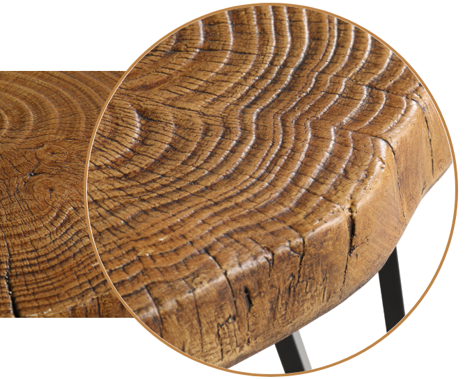 Growth-ring, time and home. Confronted with this special side table, you may feel the trace of time. Those happy moments spent with the families are just like growth-rings on the table top, become a part of beautiful memories. There are two sizes of the side table to choose from. This is a piece of furniture that can accompany home for a long time.
