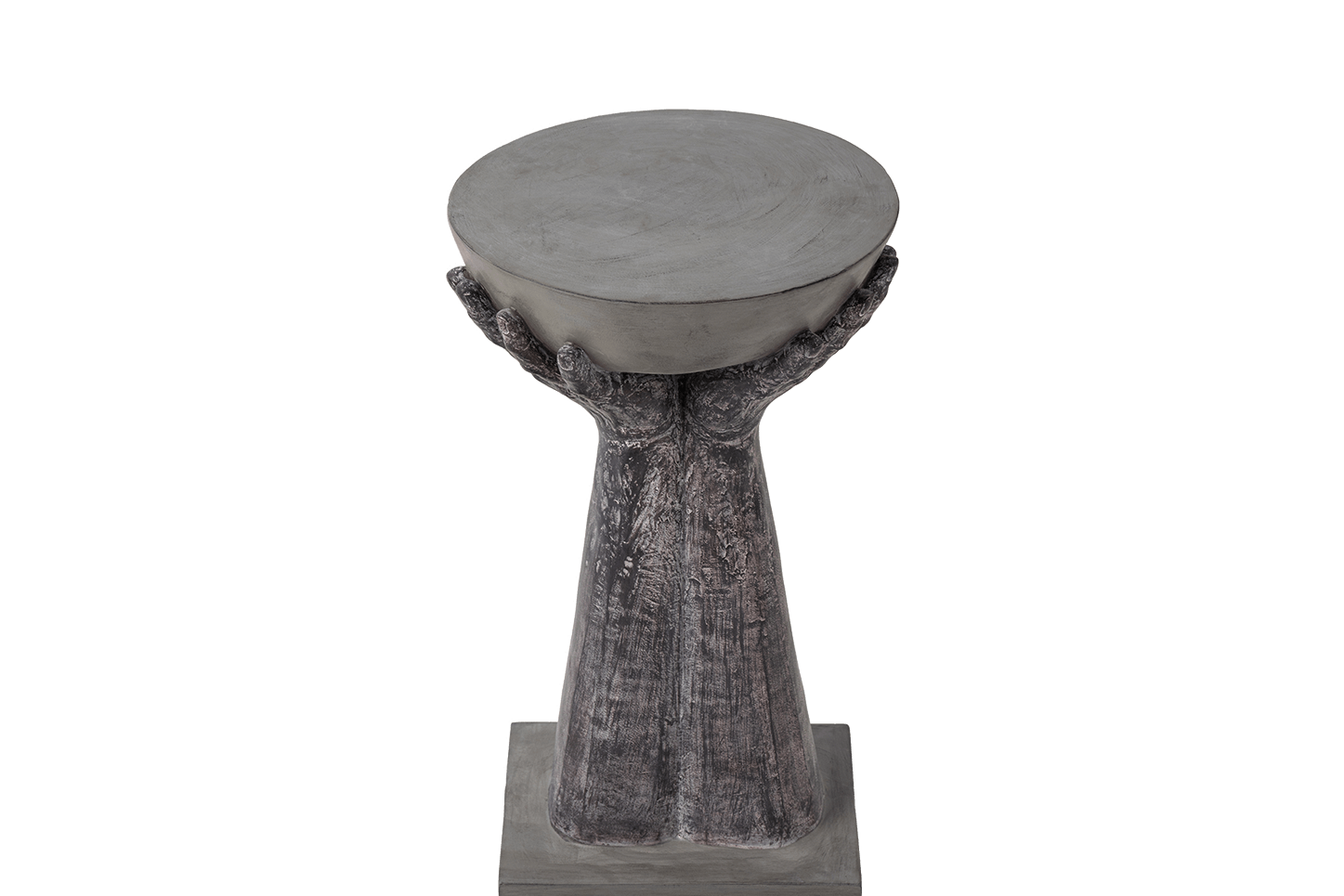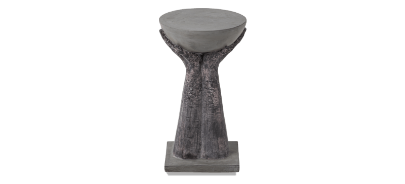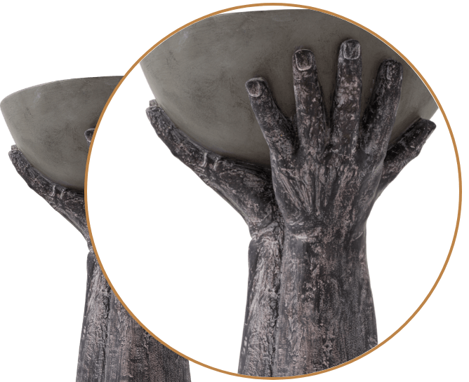 The side table has a transcendent design that two hands holds a stone bowl up to the sky. Hand shape side table is ready to make a splash by serving up coffee or glasses of drink at your next enchanted gathering. In a garden courtyard, this side table pleases the eye due to its elegant modern sculpture design. Its elegance is hidden in the details.