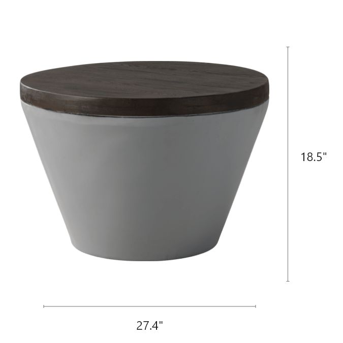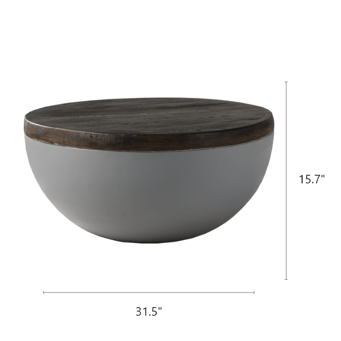 The side table has hemispherical gray faux concrete base topped with a deep brown wood-like table surface bridges demarcations in style of industrialism and naturism. The MgO composite construction makes this accent table lighter than concrete material. Durable magnesium oxide coated with high-quality finish that provides great durability. The bowl-shaped table top is quick and easy to clean. Modern coffee table that fits perfectly in front porch, back yard, and patio. Its low key color make it perfect to match any other furniture.