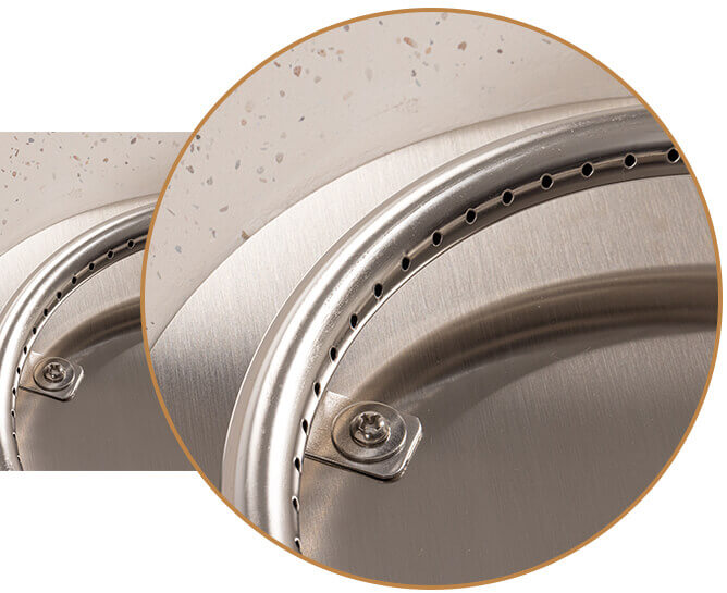 Sturdy, rust-proof stainless steel burner bowl is built to last. (Lava rocks or fire glass should never block the holes around the fire ring.)