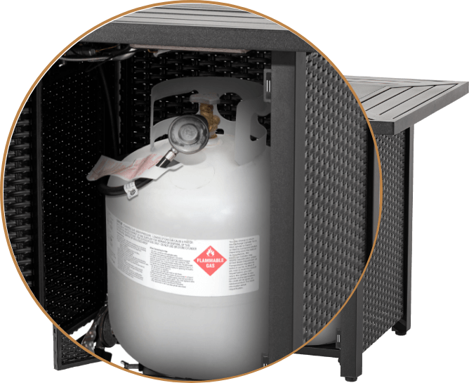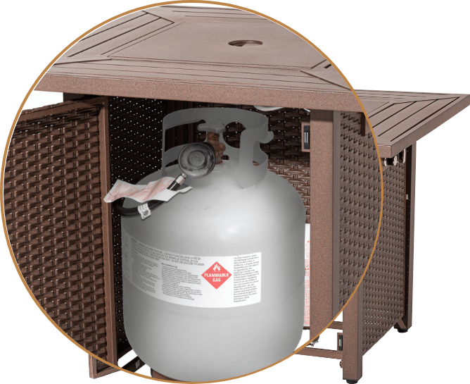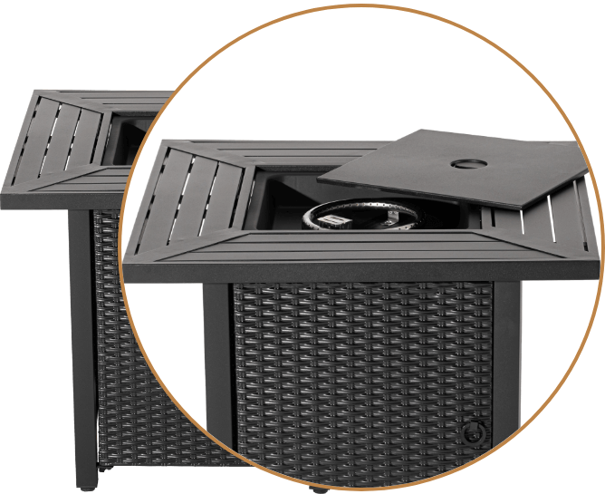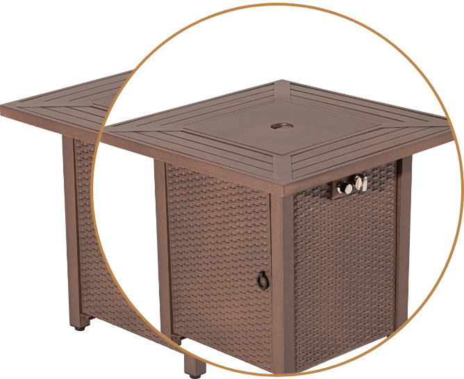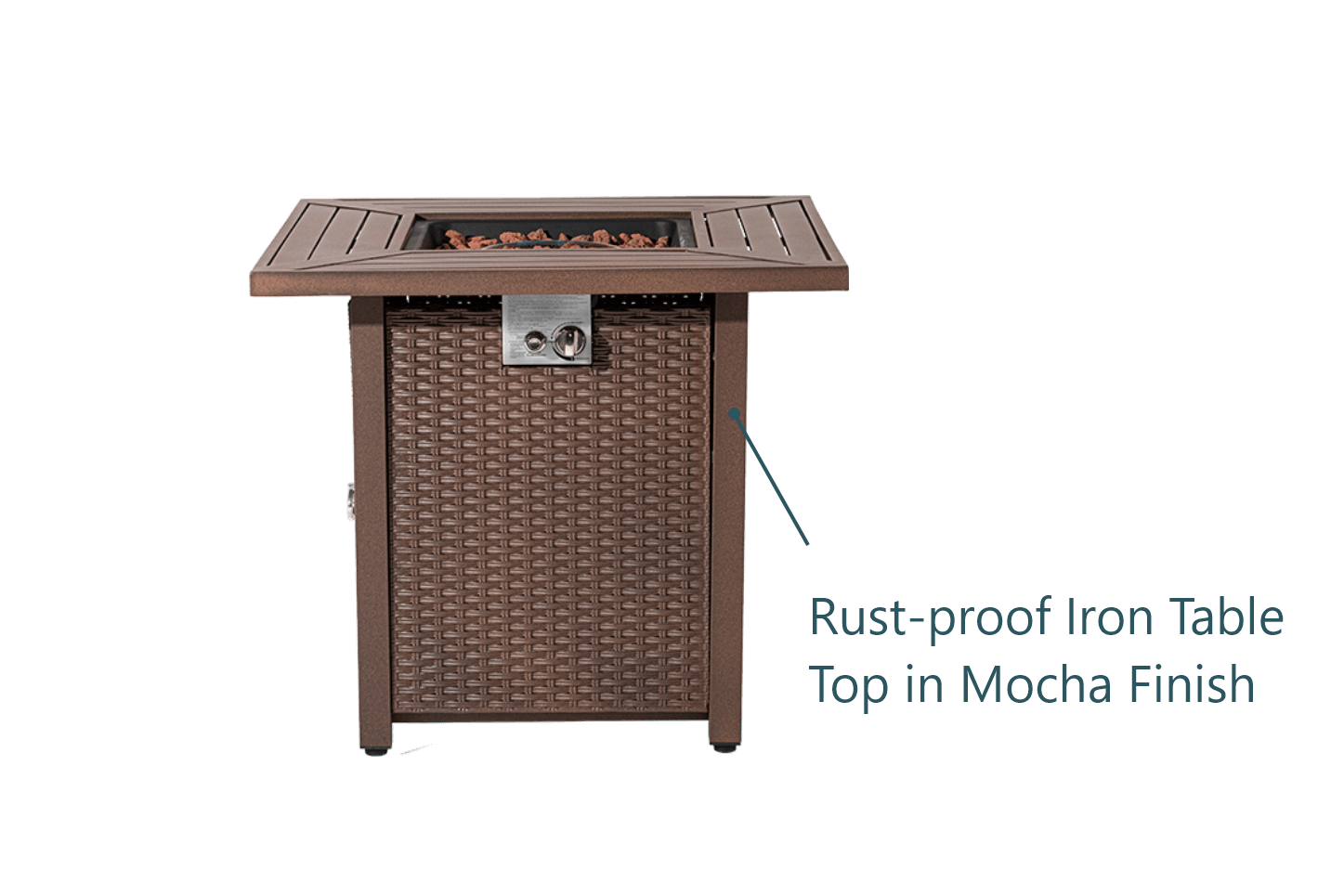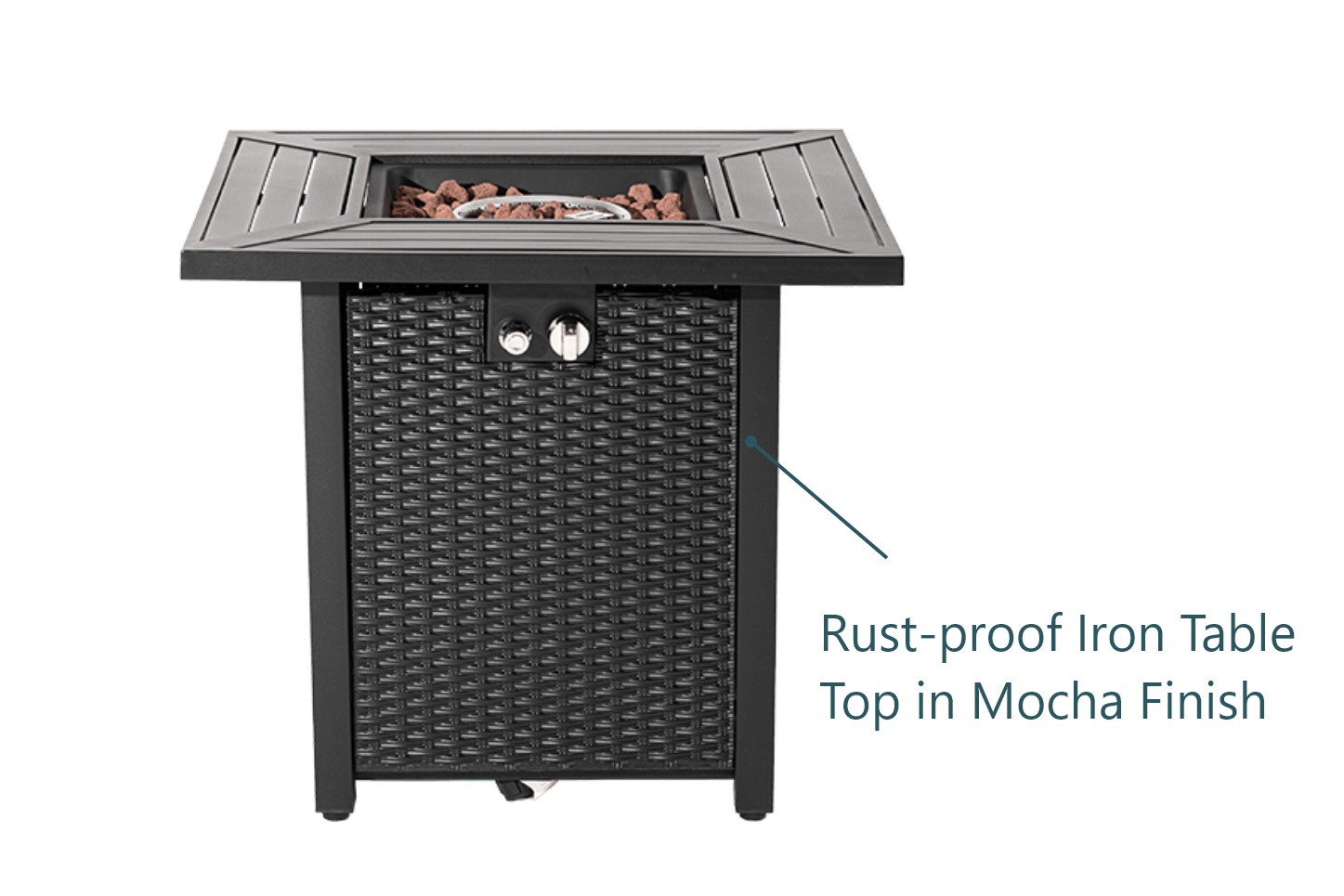 Wine is mellow and fragrant, a good fire burned in the fire pit. Light snow is coming, how about inviting your friends to your place and enjoy a cup of wine with you? Favorite winter memories always have come from sitting around a fire in backyard or on vacation. Owning a outdoor fire table is like having a portable fireplace. The charming square propane fire pit table creates quite an impressive silhouette. Glorious fire pit table is constructed from powder-coated steel that goes well in almost any backyard design plan. The stainless steel burner buried under beautiful fire glass. It self-contains a propane tank storage space and easy to move. It’s disassembled easily for storage when not in use. No back yard can be complete without some sort of fire pit.