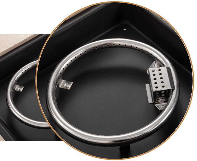 Sturdy, rust-proof stainless steel burner bowl is built to last. (Lava rocks or fire glass should never block the holes around the fire ring.)