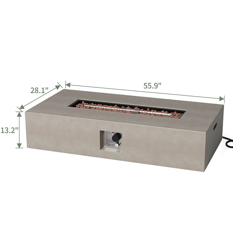 rectangle outdoor fire pit can conveniently exist drinks, food and decors. Propane fire pit table makes for the ideal outdoor centerpiece and easy to move. The whole set is a good view of the patio. Shining with metallic luster, extra elegance is added to the whole fire pit, so do your patio.