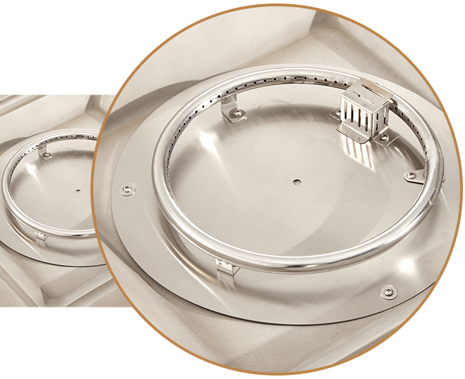 A little hole is in the middle of stainless steel burn area. It's a considerable design for water outlet. (Lava rocks or fire glass should never block the holes around the fire ring.)