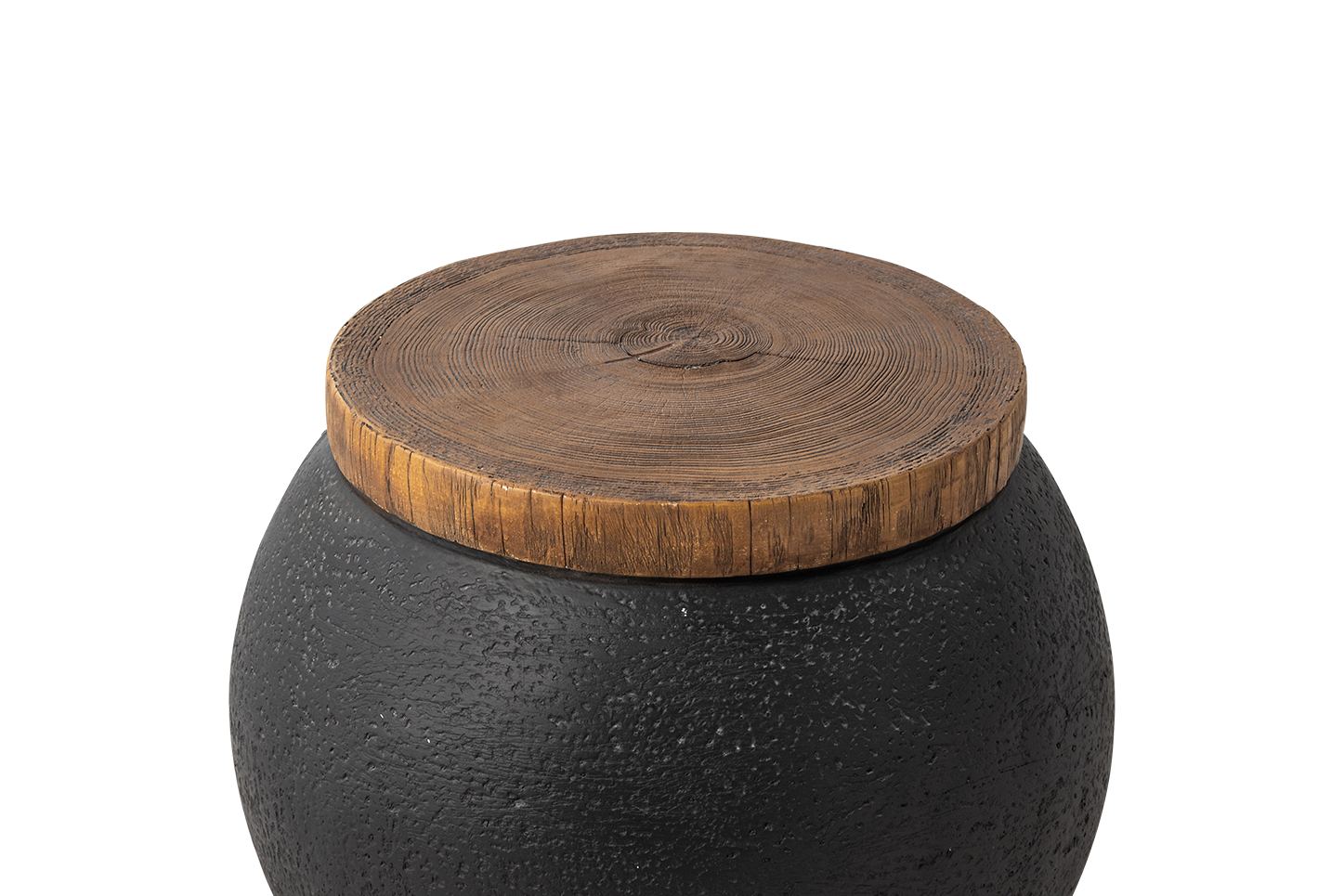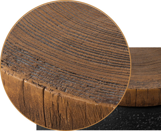A light brown hand-painted faux wood slab table top is accented by the dark brown cork-like texture of the unique shaped base. Earthy texture and wood grain appearance are masterfully crafted from sturdy yet lightweight MgO composite. No trees were harmed. These antique-style side tables feature vintage yet stylish designs. The designs give each piece its own history and a unique look, which will make a distinctive addition to your house. Whether you are looking for a coffee table to place your food and drinks, an end table for a lamp, vase, or other decorative items even as a stool, this side table is the perfect choice for you. Great for patio, balcony, and everywhere you want.